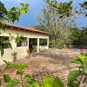 O Sítio Vovó Chiquinha é uma adorável opção de aluguel de casas que se encontra a apenas 4 km do centro histórico, oferecendo fácil acesso ao hotel Goiás Norte. Este espaço é perfeito para famílias e grupos, com amplas áreas internas e externas, permitindo um toque especial de conforto. O sítio possui uma cozinha completamente equipada, ideal para preparar refeições em conjunto e criar momentos memoráveis. A área externa é extremamente agradável, com um belo jardim e espaço para lazer, ideal para um piquenique ou um churrasco à noite. A atmosfera rural faz deste lugar um refúgio tranquilo, longe da agitação da cidade. Essa opção se destaca por proporcionar uma experiência acolhedora e única para os visitantes de Goiás, sem abrir mão da localização privilegiada.
