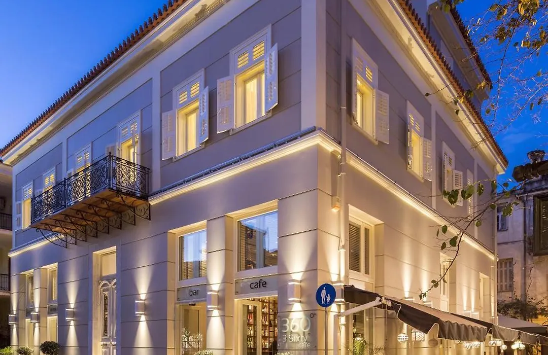3Sixty Hotel & Suites, located in the center of Old Nafplio, is housed in a beautifully restored 19th-century building. This boutique hotel offers guests a luxurious stay, combining elegant, classic design with modern amenities. Each suite is uniquely decorated, featuring high ceilings, wooden floors, and opulent furnishings, alongside contemporary comforts such as spa baths. The hotel's restaurant, 3Sixty Grill Dining & Wine Bar, is renowned for its exquisite cuisine that blends local flavors with innovative culinary techniques. Its central location provides easy access to Nafplio’s historic sites, charming shops, and bustling cafes, making the hotel a prime choice for those looking to immerse themselves in the town’s vibrant culture.